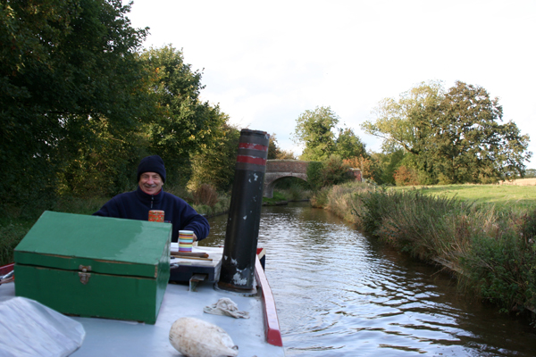 We steadily proceeded up and on through nine locks, thro' lovely countryside, and finished the day above Marbury Lock. Another little drama was again caused by yours-truly, who ended up losing the ash pan (newly-acquired at great expense) while tipping ashes discretely into the bushes and losing the said pan in a deepish ditch! Nick put on his wellies and sort of abseiled down into the ditch, rope secured to boat, to retrieve it! The village, half a mile south, was described as especially pretty and unspoiled and we decided to walk there, ending up eating at the village pub which was lovely, especially when we were offered a lift back, as it was again raining as we left.