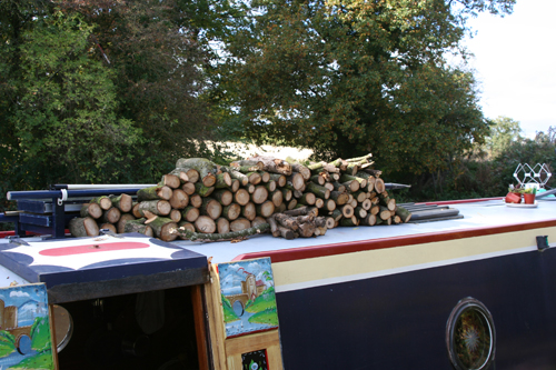 pile which was a tidy stack of logs on the roof by the time I returned.