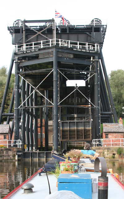 We were awake before Elanor on a cold morning but we had set the fire and soon we were warm, breakfasting, and enjoying her lively chatter until 9.30 when we went up to the house to enjoy a cooked breakfast. At midday we set off towards the Anderton Lift, stopping off for gas, and at one point, to pull an Australian couple off the bank where they were stuck. We were booked for the last lift up so we were able to cruise downstream and stop to enjoy the warm autumn sunshine. Sadly Abi missed the ride as she joined us just a few minutes after we were in the caisson. I then returned to the house to help with them the supper and to watch the pre-recorded the first two 'Come Dancing', excellent 'cos you can skip all the rubbish and watch the dancing! It's going to be another excellent series - with luck we may have our TV working by next Saturday but will unfortunately have to endure the rubbishy glitz and the pouting and posturing of the female presenter, Tess or whatever her name is!
