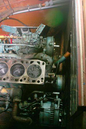 On Thursday morning, Tony and Phil appear around ten: apparently they have spent an hour or two with a diesel injection specialist and it has paid off. An hour or so later the engine starts with ne'er a wisp of white smoke, and by midday we are parting company for the last time. One small problem remains, the tachometer isn't registering, but that's something I can sort myself, and it won't stop us travelling. Apparently, there is a cold start advance device which increases fuel supply to start the engine, and this is not working and has been incorrectly set up ever since we bought the boat: so to overcome the problem the fuel timing has been mechanically retarded, and I have made a record of that for future reference. It all sounds feasible and present evidence seems to support it; IT RUNS! Before reassembling the engine enclosure, I change the oil and oil filter, and pump out all the water/diesel lying in the engine bund. Tomorrow we'll clear the cratch and look at the electrics. Tonight I'll sleep well.
