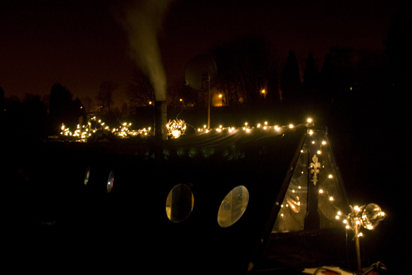 The day starts very mild but damp, and with business to attend to in Furness Vale we set off early with Jac and the dog initially walking ahead to operate the lift bridges and Nick later operating the swing bridges. We arrive in Whaley Bridge at about midday, and have bacon & egg butties for lunch before Jac goes off to do some shopping. On her return I catch the bus into High Lane to collect four additional led lamps which have been delivered post restante to another boating acquaintance. When I return we immediately take off for Bugsworth Basin where we know we will get a good TV signal (it's that programme again!) and by five o'clock we are moored securely and watching Bugsy Malone (well, it's better than the sports results!). We will probably stay here until Monday, during which time I hope to repair the leaking exhaust, finish the led installation, and get the tachometer operating again. Not necessarily in that order. We have been invited for pre-Xmas celebration with Pat-Abi-Elanor which will involve our staying overnight on Monday in Northwich.