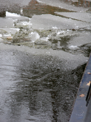 that we couldn't get up enough speed to break the ice without hitting the boat